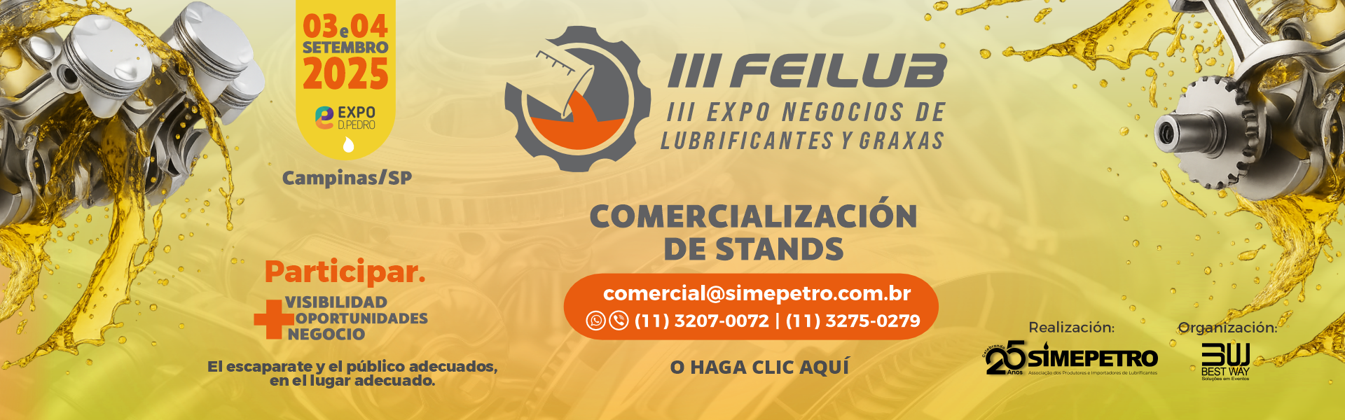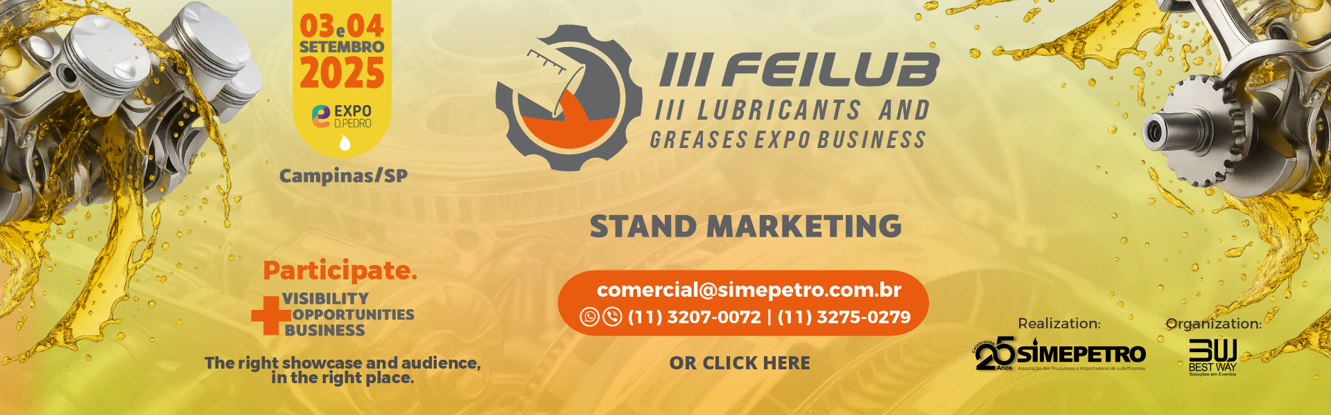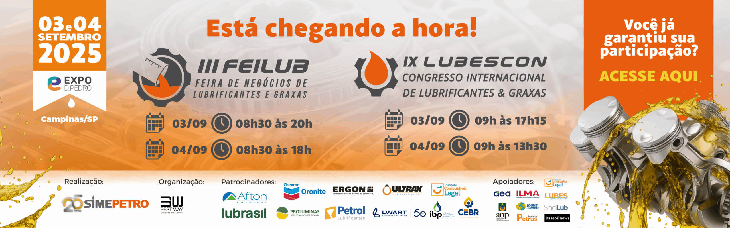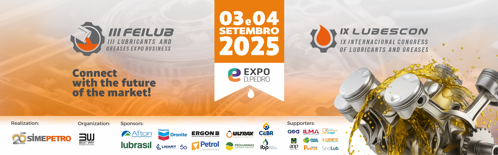 Em 2025, realizaremos o IX LUBESCON – Congresso Internacional de Lubrificantes e Graxas – e a III FEILUB – Feira de Negócios de Lubrificantes e Graxas, dois eventos que acontecerão simultaneamente no Espaço Dom Pedro, em Campinas (SP), reunindo os principais nomes, empresas e especialistas do setor para dois dias de intensa programação técnica, networking qualificado e oportunidades comerciais.